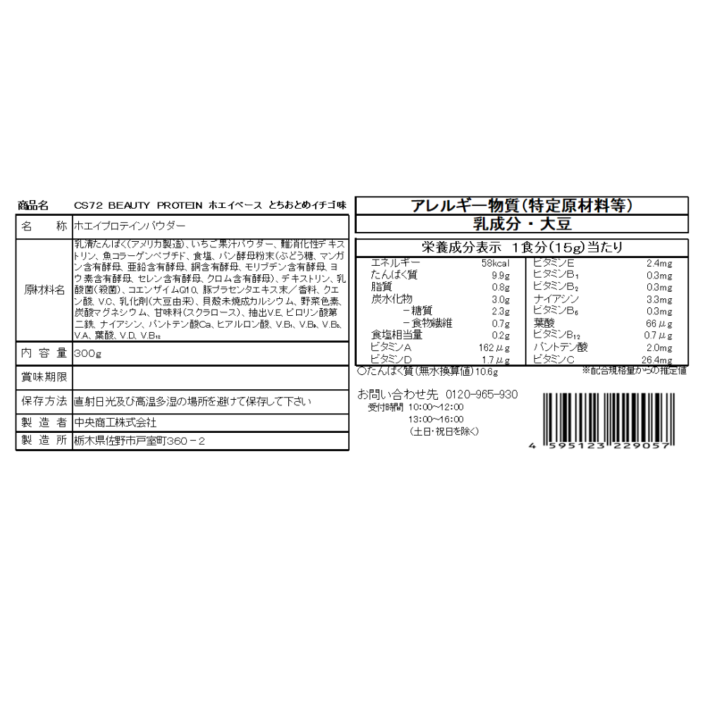 BEAUTY PROTEIN CS72 ホエイプロテイン 300g とちおとめイチゴ味 10食分 女性向け
